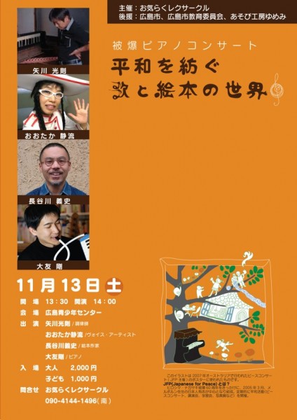 出演:矢川光則(ピアノ調律等)、長谷川義史(お話等)、おおたか静流(歌)、大友剛(ピアノ)