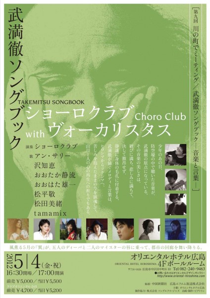 出演:ショーロクラブ (笹子重治 Guitar、秋岡欧 Bandolim、沢田穣治 Contrabass)、歌=ヴォーカリスタス(アン・サリー、沢 知恵、おおたか静流、おおはた雄一、松平 敬、松田美緒、tamamix)