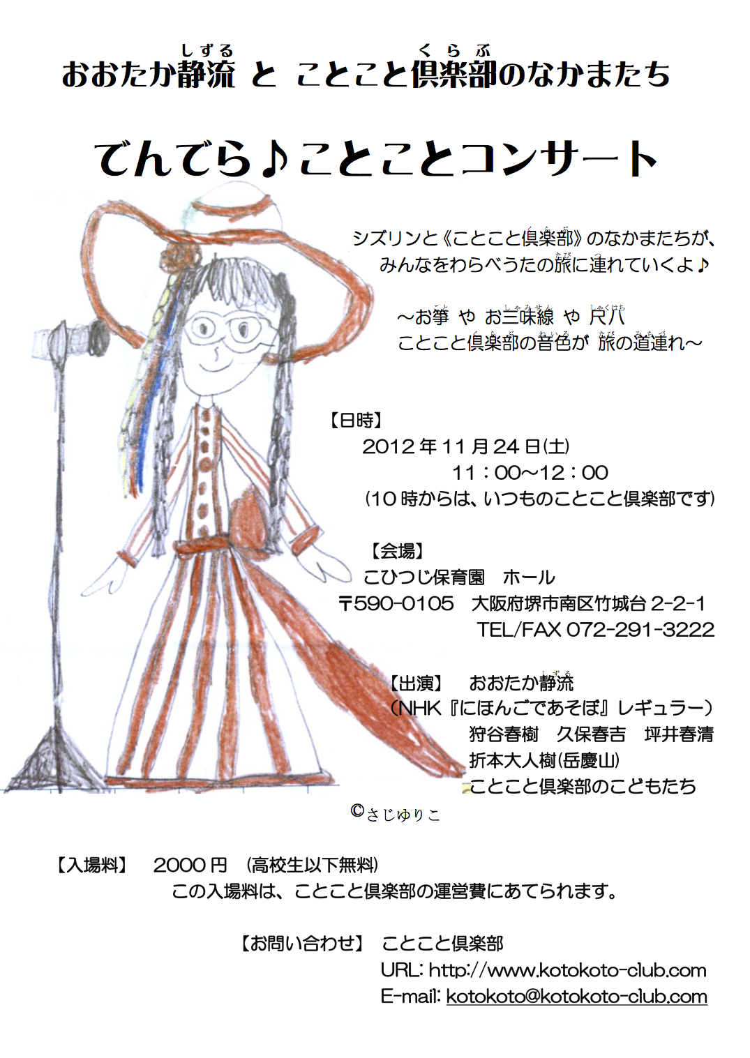 料金;2000円(高校生以下無料)(入場料は、ことこと倶楽部の運営費にあてられます)