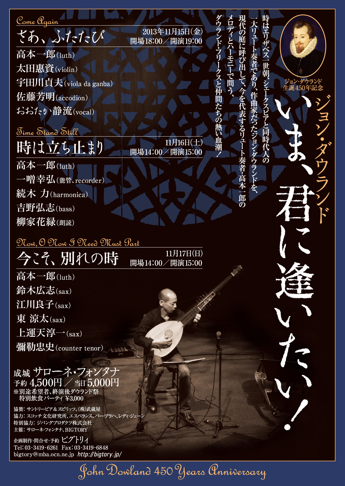 料金:4800円(当日5300円)別途希望者、終演後ダウランド祭 特別飲食パーティあり。2000円