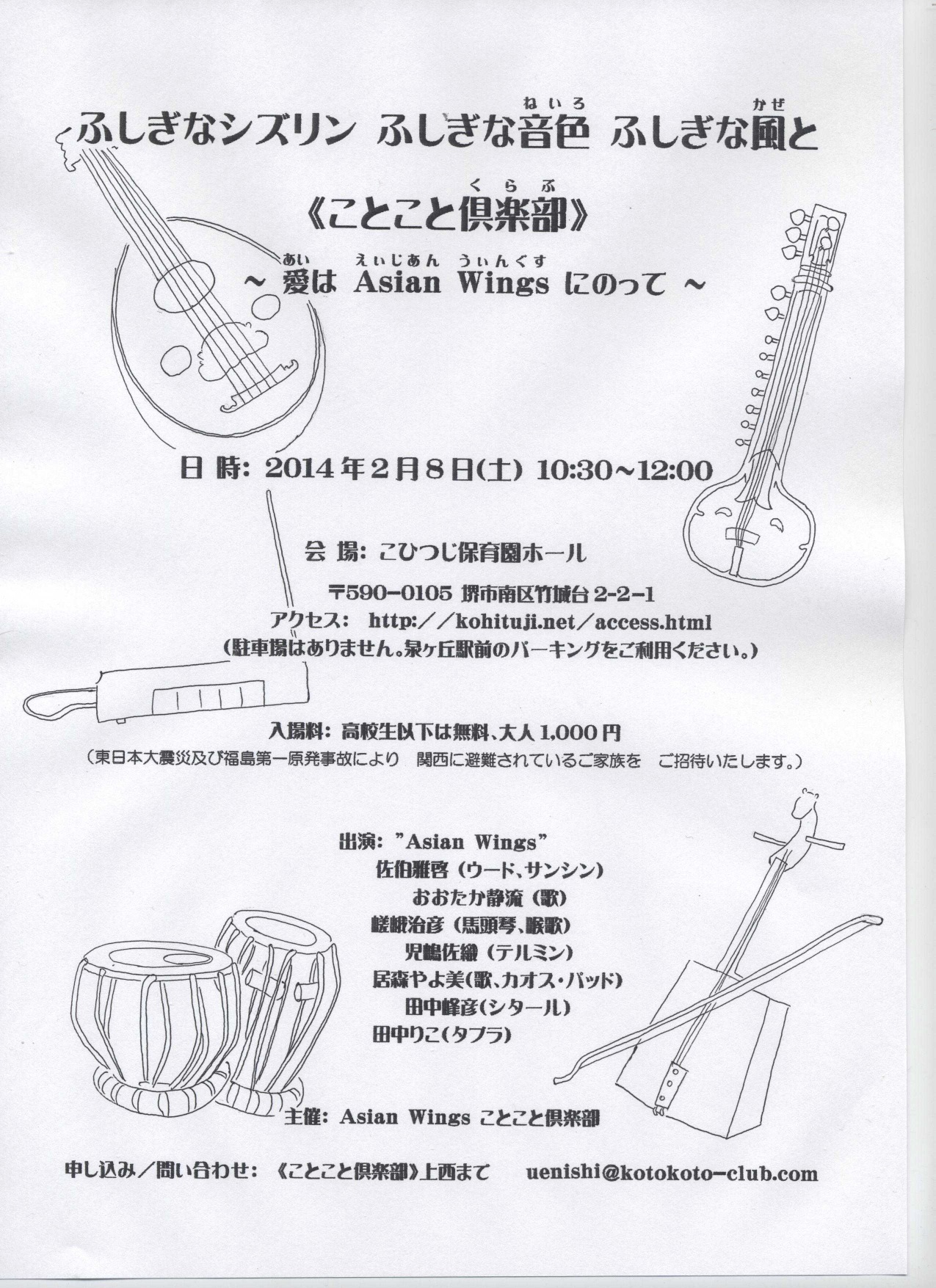 申込/問合:《ことこと倶楽部》上西までメールで。uenishi@kotokoto-club.com