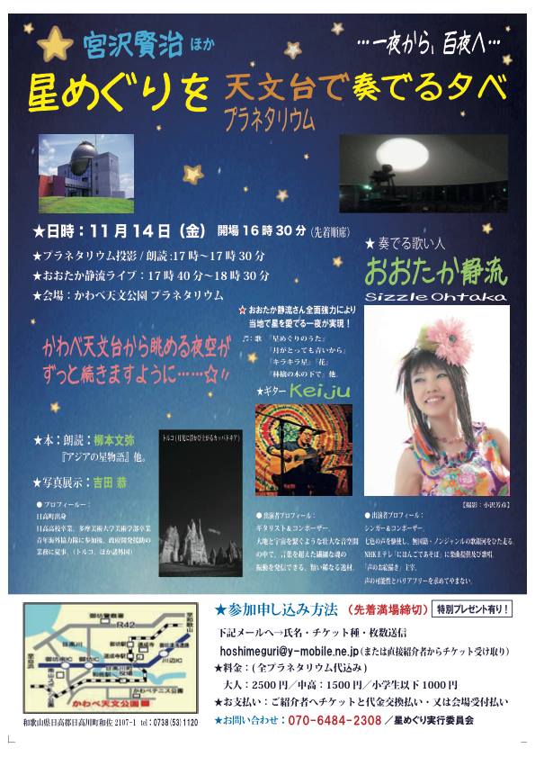 2014年11月14日(金)17:00/プラネタリウム+朗読 17:40/ライブ(開場16:30)