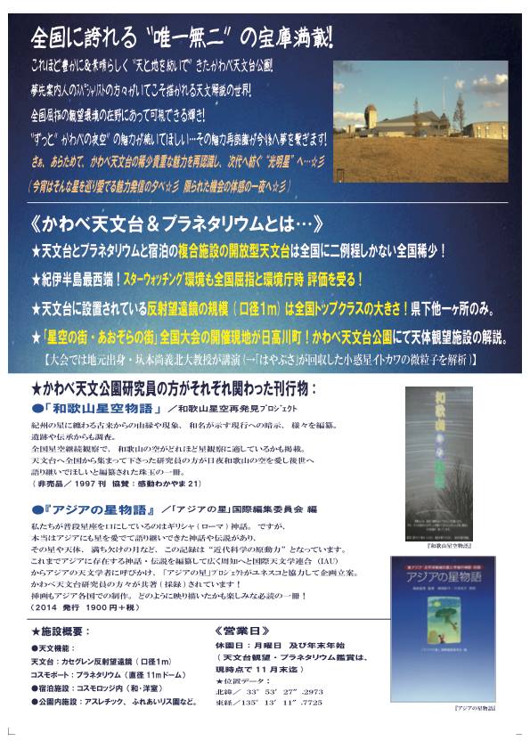 和歌山県日高川町 “かわべ天文公園プラネタリウム”(和歌山県日高郡日高川町和佐2107-1)