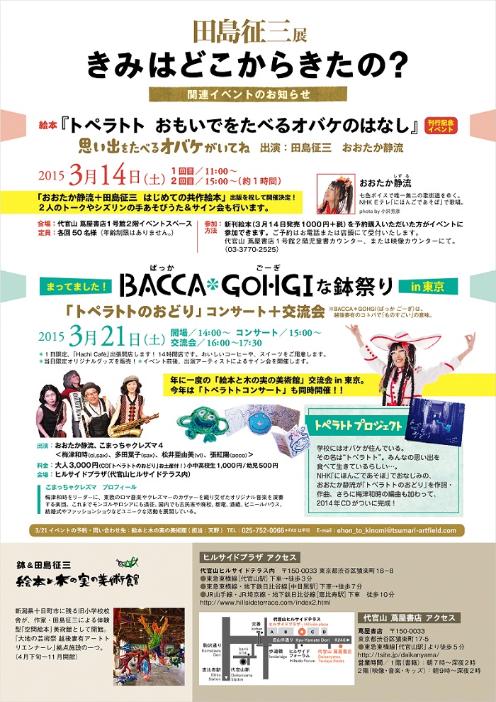 ※敬愛する田島征三さんとの初コラボ絵本が出版されます。新潟の「絵本と木の実の美術館」に棲んでいるオバケのトペラトトは、大人気!