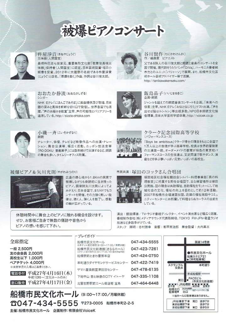チケット;船橋市民文化ホール 電話047-434-5555(9:00-17:00/月曜休館)