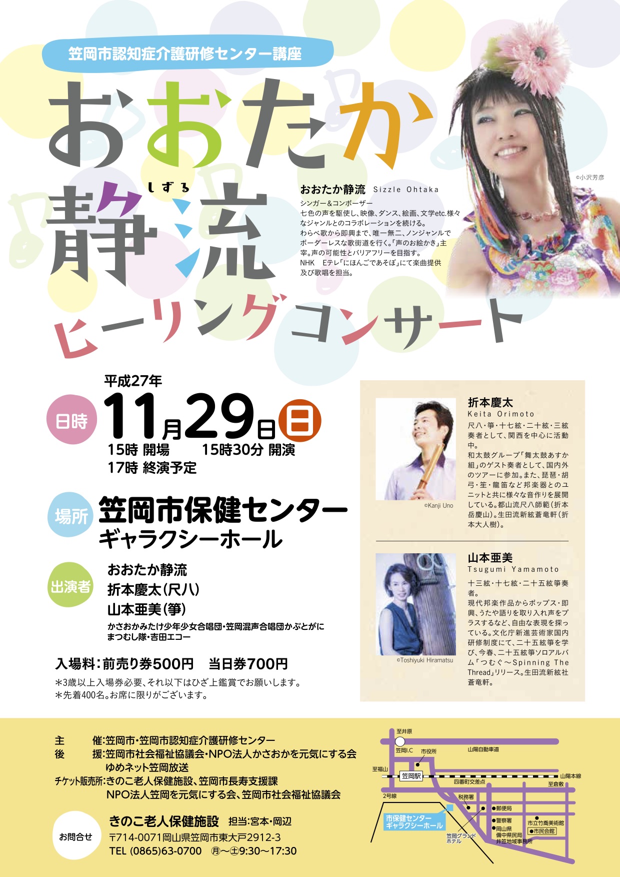 出演;おおたか静流(うた)、山本亜美(箏)、折本慶太(箏・尺八・十七絃箏)、かさおかみたけ少年少女合唱団、かぶとかに合唱団、まつむし