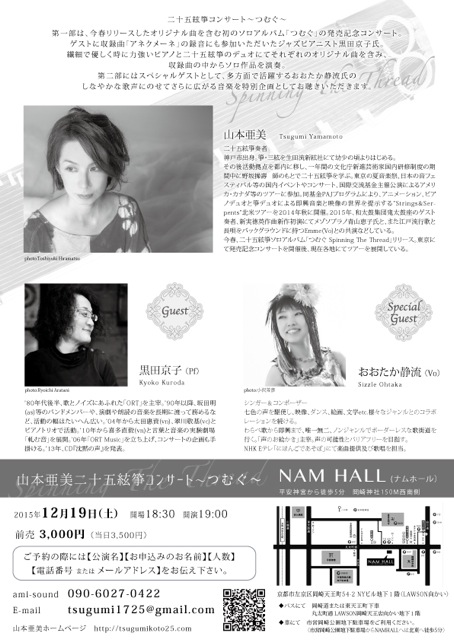 問合;ami-sound 電話 090-6027-0422 、 tsugumi1725@gmail.com