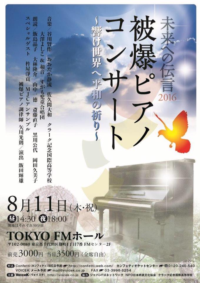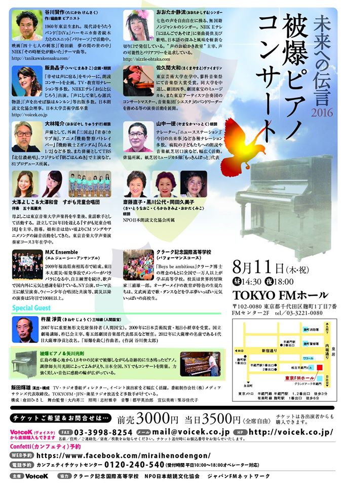 出演;谷川賢作(ピアノ)、おおたか静流(歌)、佐久間大和、大澤よしこ・和音、すがも合唱団、クラーク記念国際高等学校(歌)