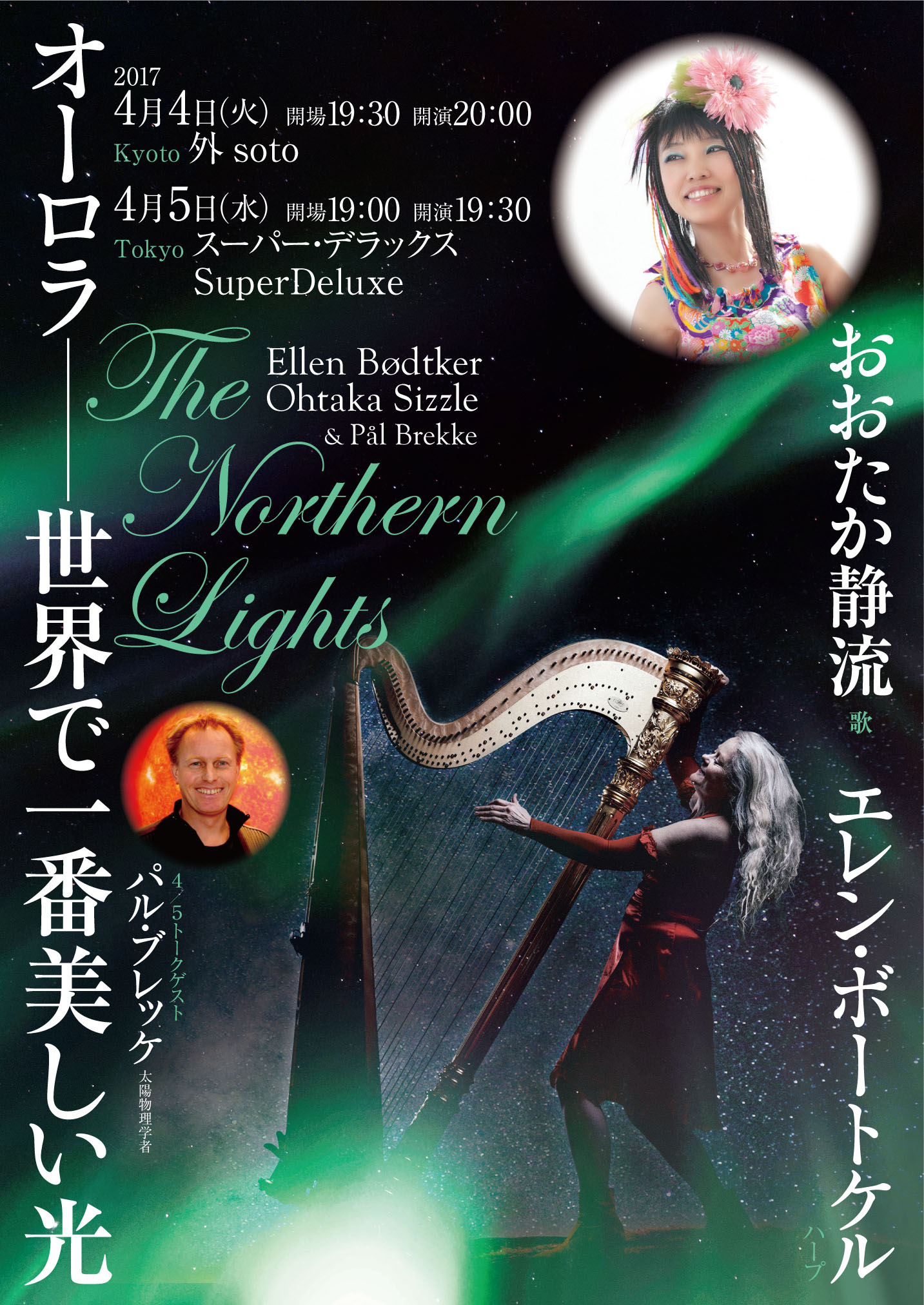 ※ノルウェーからの贈り物—オーロラの神秘とともに、美しくゆらめくハープの世界をお届けします。繊細で且つ包容力のある、琴糸の魔法!ゲストはEllenとのセッションを重ねてきた七色のVoiceです。まるで宇宙の真っ只中にいるような音空間を、京都の新しいスボットでお楽しみ下さい。