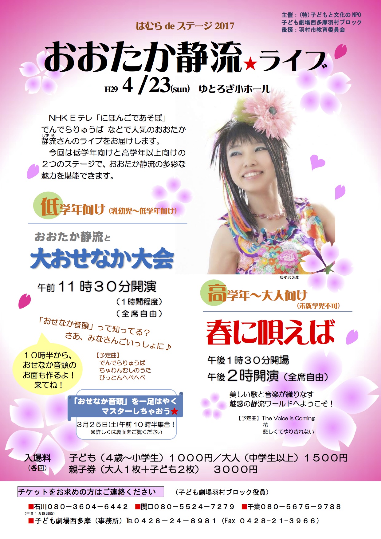 問&申込み;電話0428-24-8981(こども劇場西多摩)、080-3604-6442(石川)、080-5524-7279(関口)、080-5675-9788(千葉)