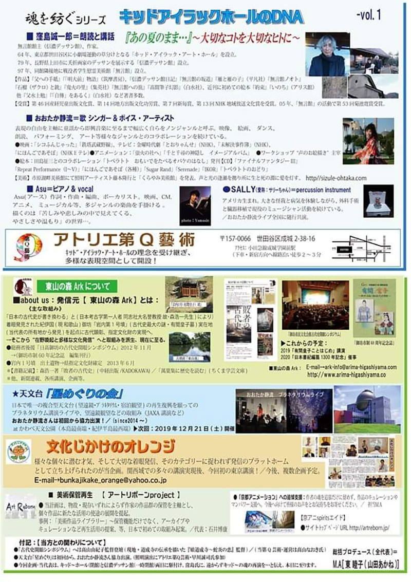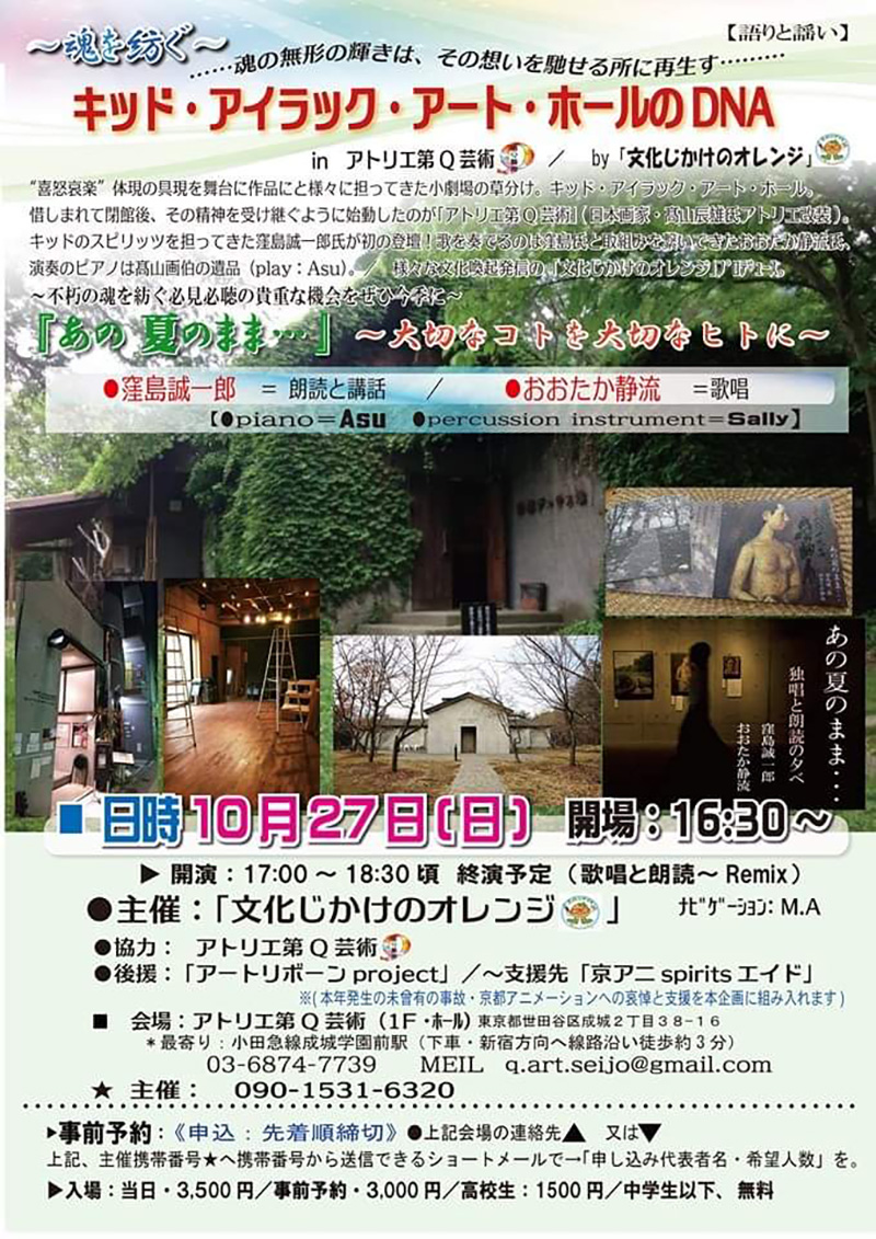 - アトリエ第Q芸術 1Fホール(東京都世田谷区成城2-38-16)
