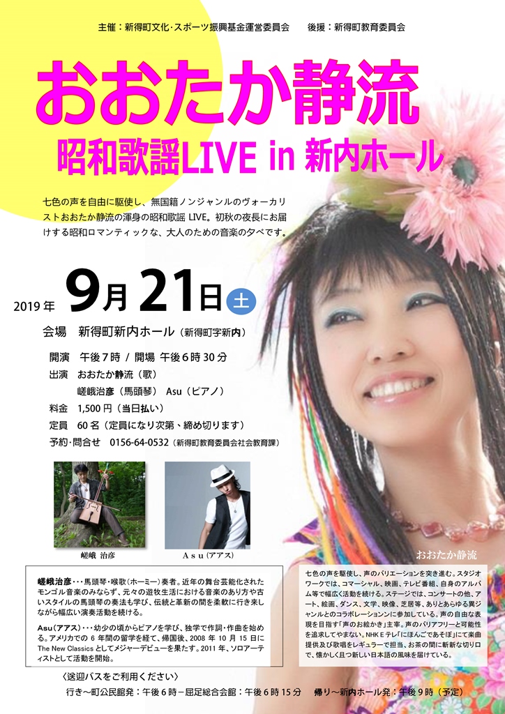 - おおたか静流(歌)、嵯峨治彦(馬頭琴)、Asu(ピアノ)