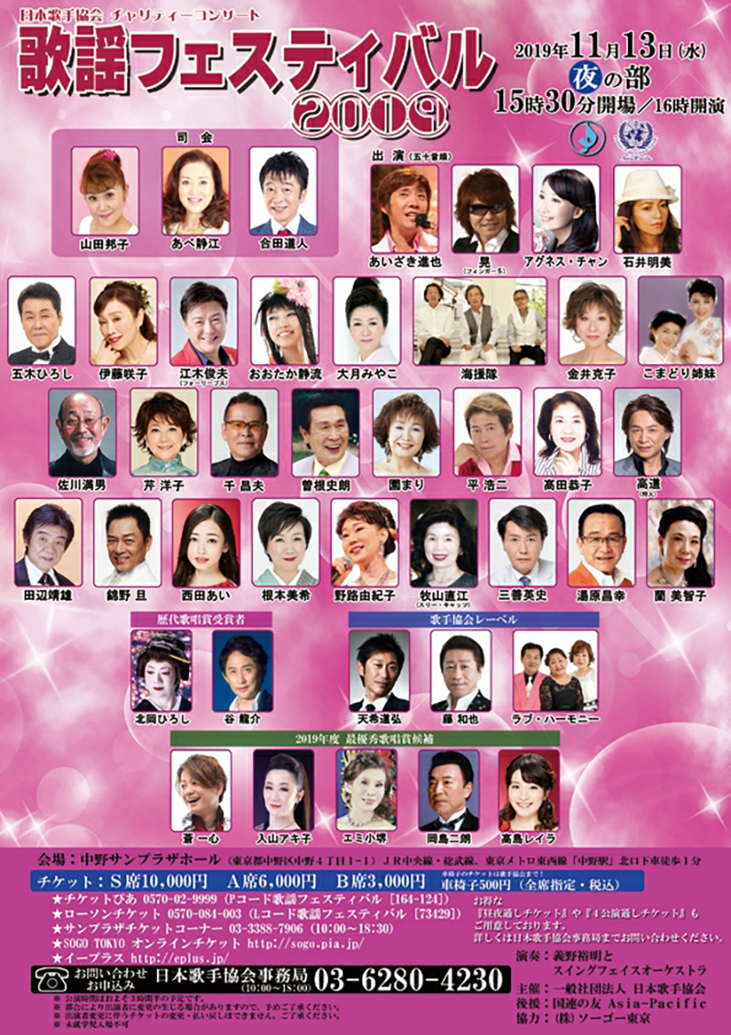- 日本歌手協会事務局 03-6280-4230(平日10時~18時)