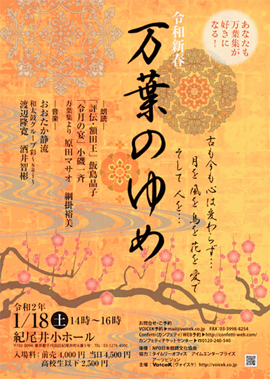 - VOICEK予約:mail@voicek.co.jp / Fax 03-3998-8254
